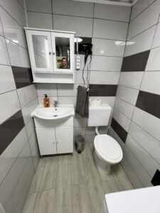 - Fürdőszoba: zuhanyzó, WC, hajszárító, mosógép