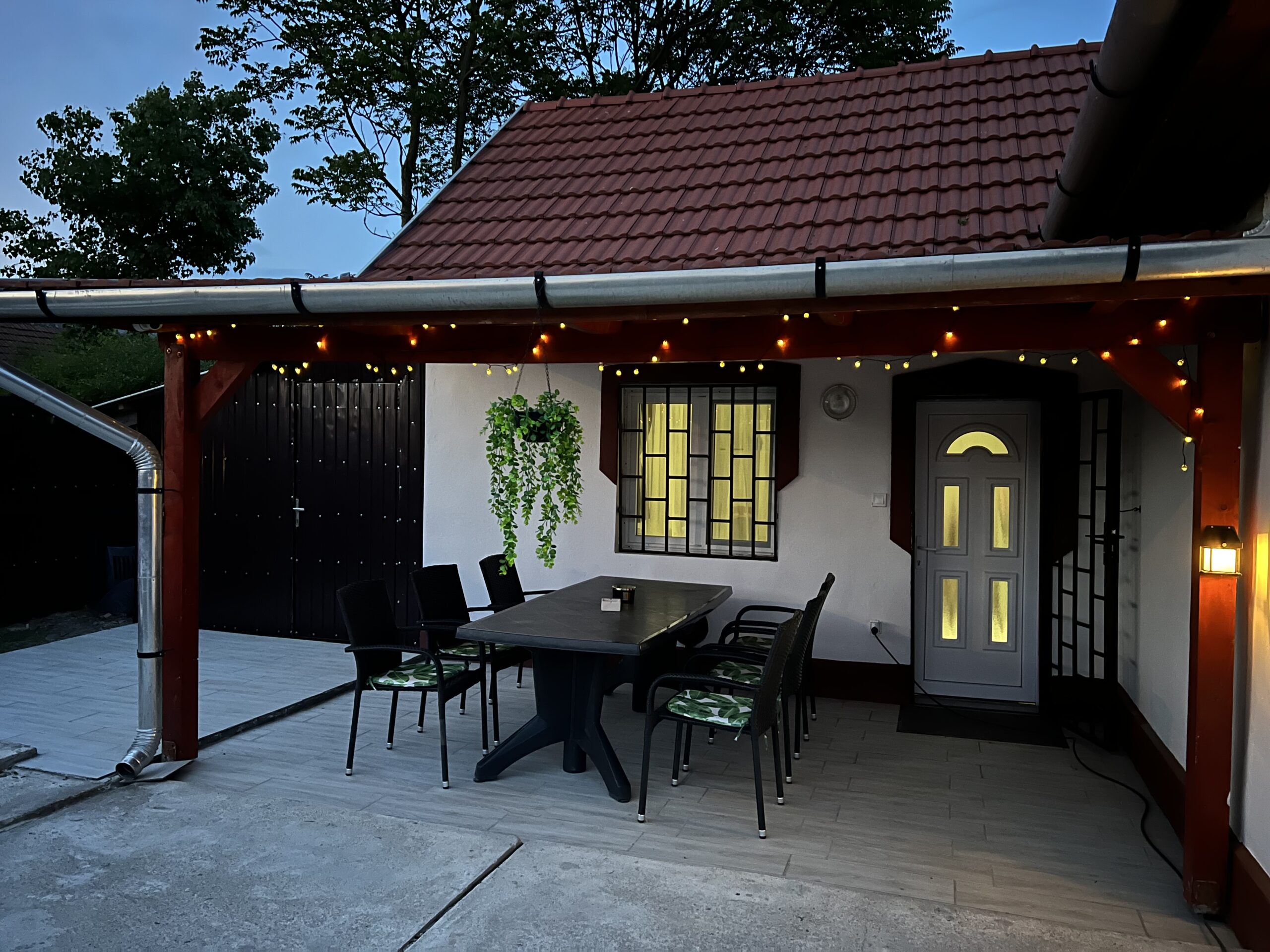 - Fedett terasz kényelmes kerti bútorokkal